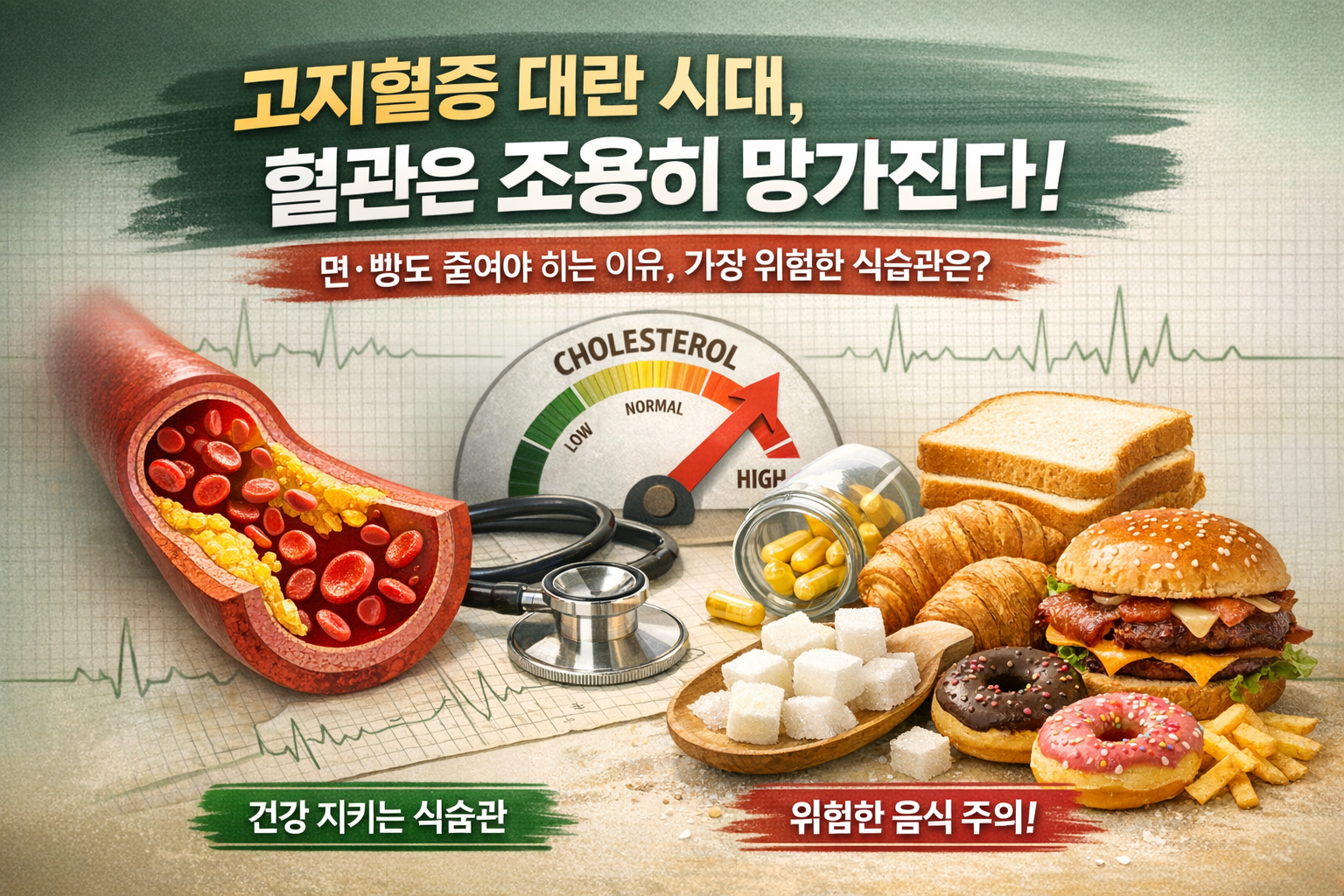 고지혈증 대란 시대, 혈관은 조용히 망가진다 ― 면·빵도 줄여야 하는 이유, 가장 위험한 식습관은?