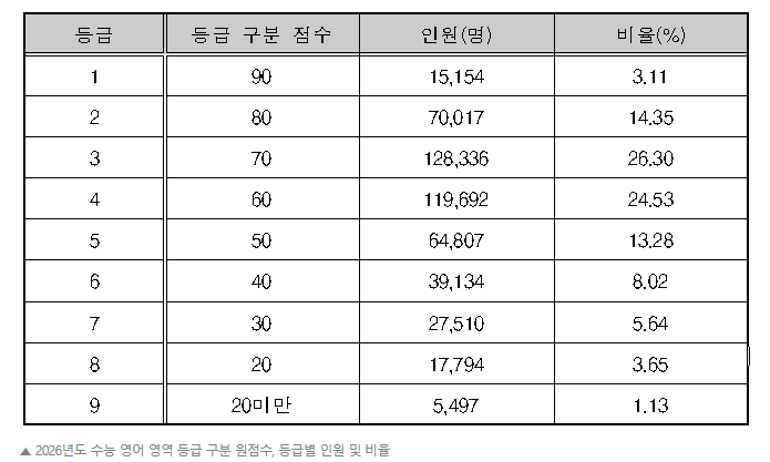 2026학년도 수능 등급컷