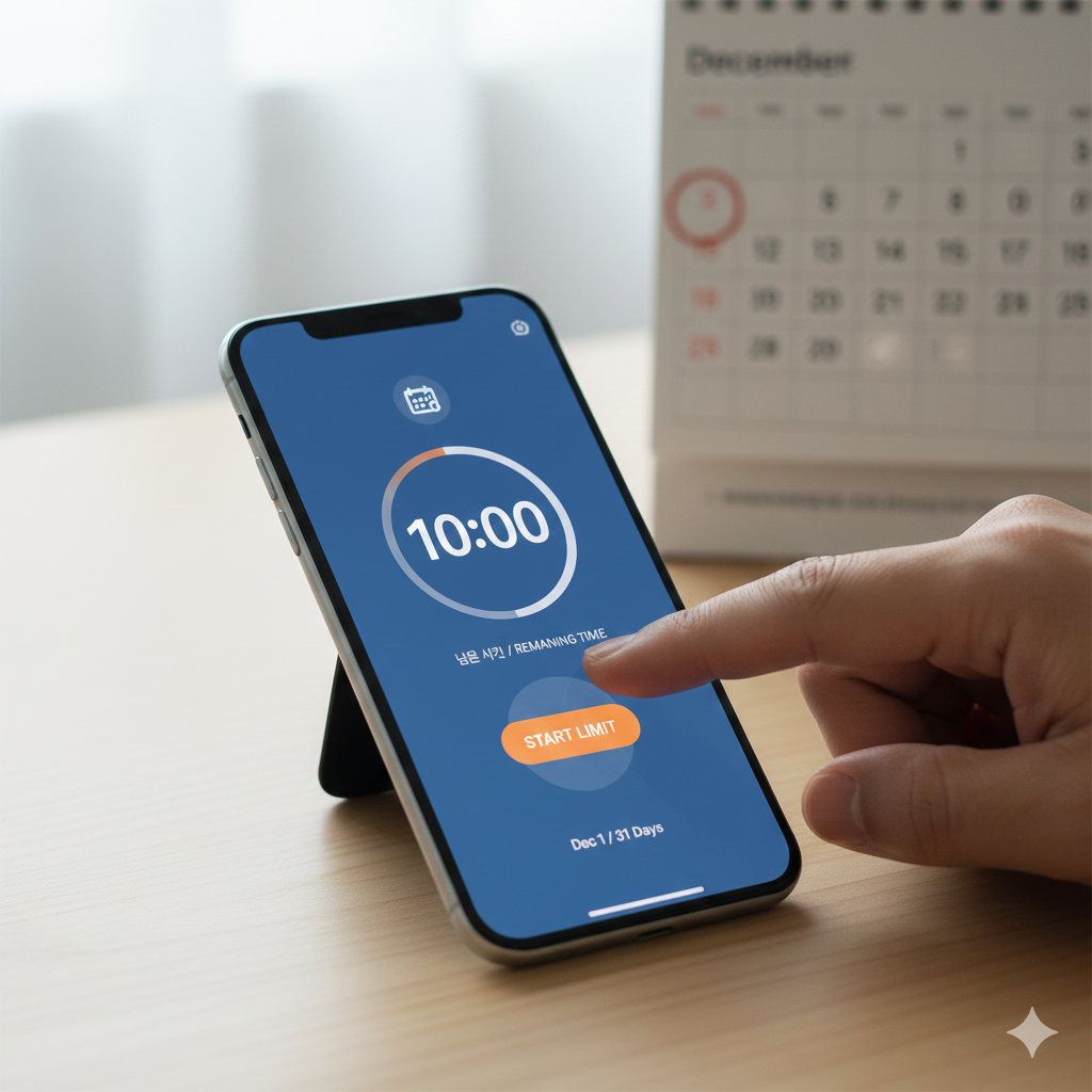 2. SNS 사용 시간 제한 설정: 하루 10분으로 제한하고, 소비 자극 계정은 임시 숨김 처리한다