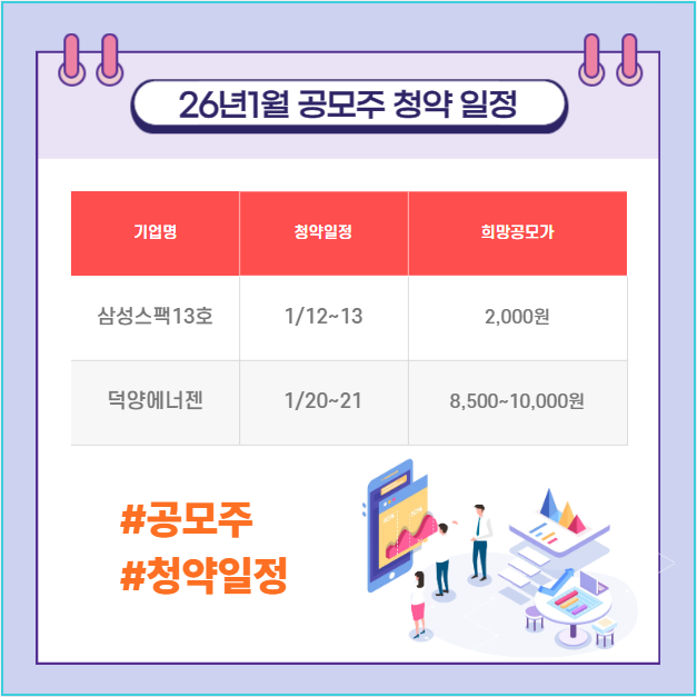 2026년 1월 공모주 일정을 확인하셨나요? 놀랍게도 딱 2개입니다. 삼성스팩13호와 덕양에너젠. 이게 전부예요.