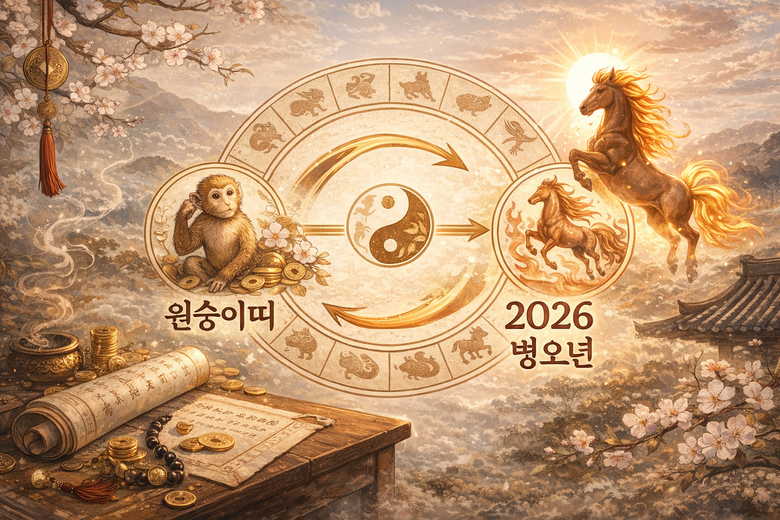 2026년은 병오년(丙午年)입니다. 병(丙)은 드러남, 에너지, 주목받는 것을 의미하고, 오(午)는 움직임, 확장, 속도를 뜻합니다. 쉽게 말하면, 가만히 앉아 있으면 체감이 적고, 움직일수록 반응이 오는 해라는 겁니다. 조용히 기다리는 사람보다, 조금이라도 손을 쓰는 사람에게 기회가 보이는 흐름이죠.